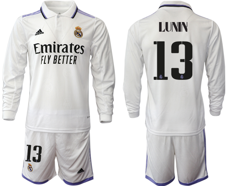 Fodboldtrøjer til mænd Real Madrid Home 2023 Langærmet + Shorts LUNIN 13