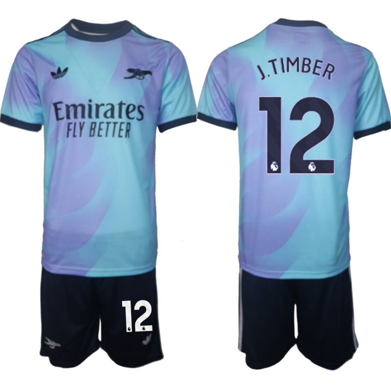 Il design della terza maglia da calcio dell'Arsenal FC 2024-25 è moderno in contrasto con il classico logo Trebil.Il design della terza maglia da calcio dell'Arsenal FC 2024-25 è moderno in contrasto con il classico logo Trebil. Presenta un moderno design sfumato che ricorda l'aurora boreale.
