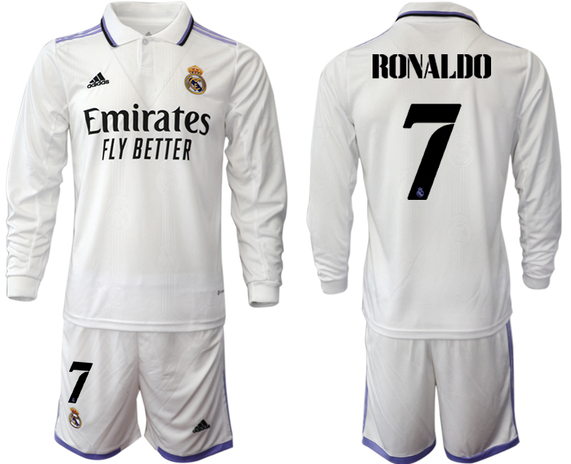 Fotballtrøyer for menn Real Madrid Hjem 2023 langermet + shorts RONALDO 7