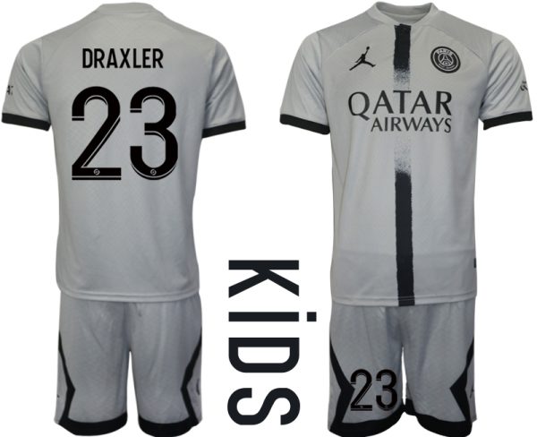 Otroški Nogometni dresi Paris Saint-Germain PSG Gostujoči 2023 Kratek Rokav + Kratke hlače DRAXLER 23