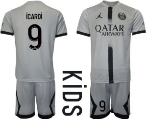 Otroški Nogometni dresi Paris Saint-Germain PSG Gostujoči 2023 Kratek Rokav + Kratke hlače iCARDi 9