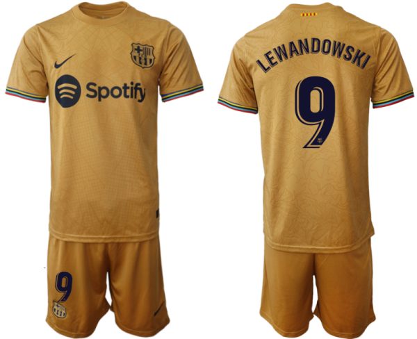 Moški Nogometni dresi Barcelona Gostujoči 2023 Kratek Rokav + Kratke hlače LEWANDOWSKI 9