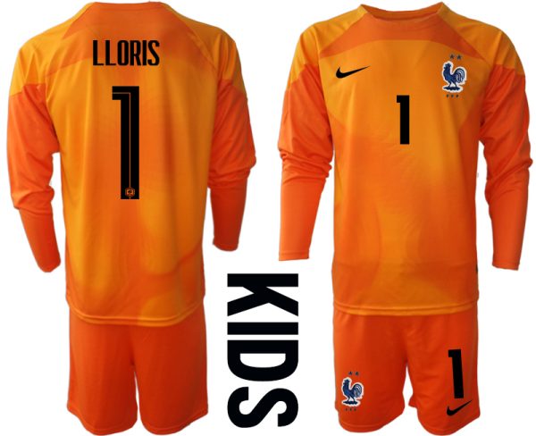 Otroški Nogometni dresi kompleti Francija Vratar Gostujoči SP 2022 Dolgi Rokav + Kratke hlače LLORIS 1