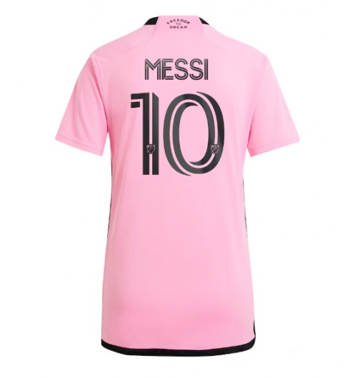 Simplu, dar plin de mândrie pentru Lionel Messi de la Inter Miami FC, tricoul de casă al clubului este pur și simplu roz. Culoarea roz pur este mai închisă decât tricoul din sezonul trecut, cu detalii negre pe guler, tiv, laterale și logo. Stema Inter Miami este brodată în centrul tricoului, iar sponsorii Royal Caribbean sunt imprimați pe acesta. Pe spatele tricoului se află numele oficial "Messi" și numărul echipei sale "10".